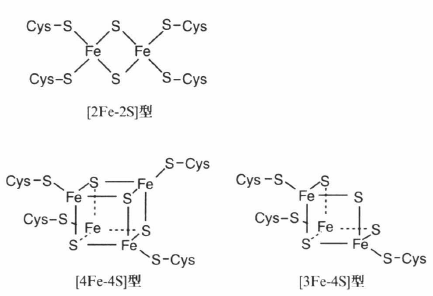 非ヘム鉄と酸不安定性硫黄を含む水溶性電子伝達タンパク質の総称で,分子量は0.6万~1.4万程度.酸化還元中心としては[2Fe–2S]型,[3Fe–4S]型,[4Fe–4S]型の鉄–硫黄クラスターが存在する.Fe原子は,タンパク質分子のシステイン残基のチオール基と配位結合している.シアノバクテリアや植物葉緑体および根・果実のプラスチドに存在するフェレドキシンは[2Fe–2S]型である.[3F–4S]型,[4Fe–4S]型は,紅色細菌や緑色硫黄細菌をはじめ,広く細菌類に存在する.光合成系をはじめ,亜硝酸代謝系,亜硫酸代謝系,窒素同化系,窒素固定系,ヒドロゲナーゼ系,クロロフィル生合成系などさまざまな電子伝達反応に関与する.同一タンパク質内に[4Fe–4S]型を2個もつ8Fe型や[3Fe–4S]型と[4Fe–4S]型の両方を合わせもつ7Fe型も知られている.[4Fe-4S]型と[2Fe-2S]型を保持する典型的なアミノ酸配列モチーフは各々CxxCxxCxxxCP,CxxxxCxxCである.[4Fe–4S]型鉄–硫黄クラスターが3つのシステイン残基と1つのアスパラギン酸残基によって配位されたフェレドキシンも知られている.
