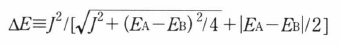HOMO-LUMO間エネルギー差は各分子の励起エネルギーで,EAおよびEBとする.分子Aのみが励起されている状態をケットベクトル|A>で表す.同様に|B>を導入する.これらの間に式(1)の相互作用Jが働くので,量子力学に従うと各分子の励起エネルギーは