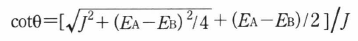 のときには,式(1)のEET相互作用Jが非常に強いため,位相が乱れるより速く|A>と|B>間の量子力学的結合が達成され,両分子上に広がった励起状態が2つできる.固有エネルギーの大きい順に|A>cosθ+|B> sinθと-|A>sinθ+|B>cosθである.ここでθは,