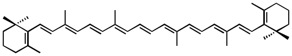 カロテノイドの一種.中央部の9個のC=C結合に加えて,2個のβ末端基から構成される共役二重結合系を持つ.一部の例外を除いて,酸素発生型光合成生物に普遍的に存在する最も代表的なカロテノイドであり,主成分である生物も多い.緑色糸状性細菌,緑色硫黄細菌,一部の好気性光合成細菌にも存在する.リコペンからリコペンβ-シクラーゼ(CrtL, CrtL-b, CrtY)により合成され,ゼアキサンチンなどに変化する.
