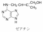 植物ホルモンの一種.植物組織培養系の細胞分裂の促進物質として,DNAの熱分解生成物からカイネチンが単離された.植物生理活性として,カルスにおける葉と芽の形成誘導,腋芽の活性化,老化阻害,栄養の転流調節,細胞周期の調節,着果促進,果粒肥大作用などがある.アデニンの6位の窒素原子にイソペンテニル基をもつ構造が基本骨格で,側鎖のメチル基のトランスに水酸基が導入されたゼアチンが最も強い生理活性を示す.シス体は活性が弱い.9位の窒素にリボースの結合したもの,さらにリボースにリン酸基の結合したものも存在する. AMP, ADP, ATPがイソペンテニル転移酵素によりプレニル化されて生合成される. tRNAの分解によって生合成される経路も可能であるが,その寄与は小さいと考えられている.合成サイトカイニンとしてベンジルアデニンやチジアズロンがある.サイトカイニンは一般的に分裂組織,未熟種子,形成途上の維管束系で濃度が高い.植物病原菌のアグロバクテリアもサイトカイニンを生産して植物に腫瘍組織を形成させるが,その生合成経路は植物の経路とは異なる.サイトカイニンは根で生合成され,導管によって地上部に運ばれると考えられている.サイトカイニンの受容は突然変異体cre1の解析からHis-Aspリン酸リレー系のヒスチジンキナーゼに属するタンパク質によって受容されることが明らかになった.農業上はランのメリクロン培養,リンゴの増収に用いられている.