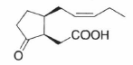 メチルエステルはジャスミンの香気成分として単離され,遊離の酸は植物病原菌の生産する植物成長阻害物質として単離された.その後,植物内生の成長阻害物質として同定された.ジャスモン酸はクロロフィルの分解,老化,塊茎形成,エチレン生合成,離層形成の促進,腋芽,胚形成,種子の発芽阻害と傷害応答などの多様な生理作用を示す.発芽初期の幼植物の分裂が盛んな部分や花芽での濃度が高い.リノレン酸からリポキシゲナーゼにより過酸化物に変換され,エポキシ化合物を経て,環化後β酸化を受けて生合成される.シス型(+)-7-イソジャスモン酸とトランス型(-)-ジヤスモン酸がある.一般的にシス型が活性が高いが,不安定である.哺乳動物のプロスタグランジンと類似の化学構造をもつ.