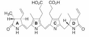 フィコエリスリンのα,β,γサブユニットのほか,R-フィコシアニンのα, βサブユニットに存在する発色団である.開環テトラピロール構造をもち,A環あるいはA環とD環の両方を介して特定のシステイン残基と共有結合している.共役二重結合の長さは6個で, 530~570 nm の光を吸収する.