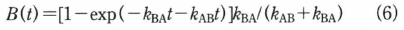 に近づく.他方,前の場合では,初期時間においてB(t)が(kBA+kAB)tの形でtに比例して立ち上がる.